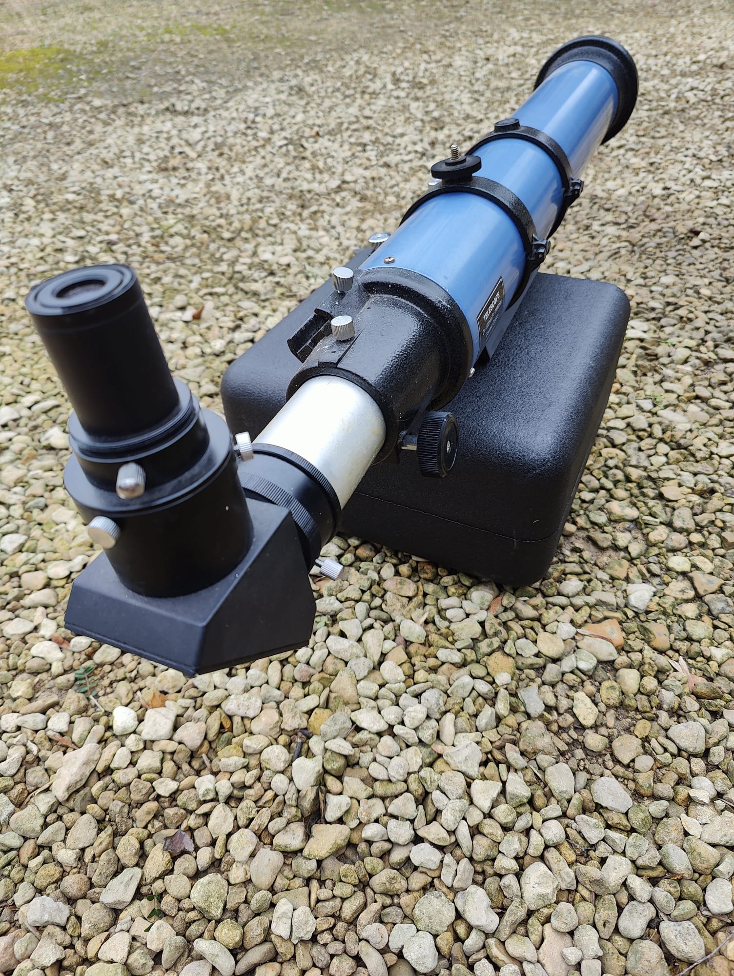Complete with Celestron CG-4 German EQ manual mount & basic eyepiece set. Ideal for Lunar and Planetary visual observing.